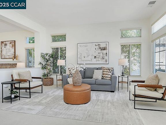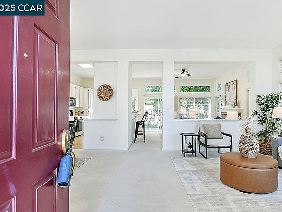 Welcome to this charming 55+ Summerset 1 residence, where comfort meets convenience in a low-maintenance setting. Situated on a desirable corner lot, the home invites you in with a charming covered entrance. Inside, you're greeted by high ceilings that flood the space with natural light, creating a warm and inviting atmosphere. The open-concept layout is perfect for both relaxation and entertaining, featuring two spacious living areas, a cozy fireplace, and a formal dining area. The eat-in kitchen is a chef's delight, complete with a breakfast bar and freshly painted cabinets. Both spacious bedrooms offer the luxury of walk-in closets, while the primary bathroom is equipped with double sinks for added convenience. Additional highlights of this home include an indoor laundry room with a sink and storage cabinets, as well as a secure, attached two-car garage. Step outside to enjoy a low-maintenance yard and patio, perfect for unwinding or hosting gatherings. This lovely gated community offers a community pool/spa, gym, tennis courts, bocce ball courts, and various activity clubs. Close to John Muir, Kaiser, CVS, and Safeway. Don't miss your chance to own this lovely home and lifestyle.