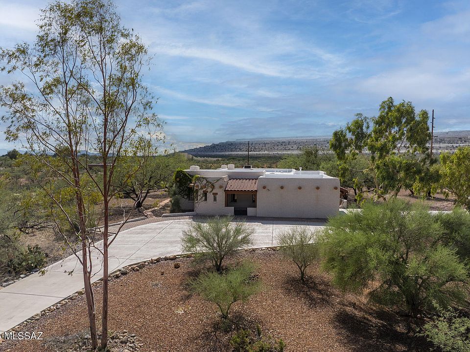 This charming 4.28 Acre home in Green Valley, AZ, offers a perfect blend of comfort and privacy. Boasting a spacious Arizona room that provides ample natural light and scenic views, the property also features a separate guest house with its own entrance, ideal for visitors or as a rental. The home is surrounded by stunning mountain views, adding to its serene and peaceful ambiance. A circular driveway offers easy access and plenty of parking, while a shed provides extra storage space for all your needs. Built with durable adobe brick, the home exudes southwestern charm and character. Inside, you'll find three wood-burning fireplaces, perfect for cozy evenings. Best of all, there's no HOA, giving you the freedom to enjoy your property to its fullest.