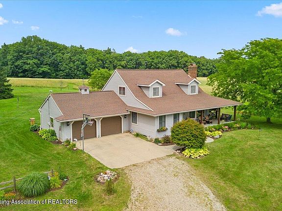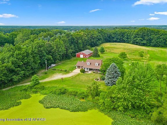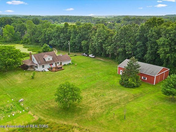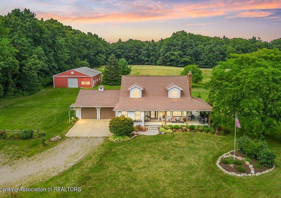 DREAM PROPERTY ON CLOSE TO 6 acres + POND + POLE BARN IN DEWITT! Country living at it's best with this meticulously maintained home nestled on close to 6 acres of gorgeous property with its very own pond and 56x40 pole barn with electric & water and partially heated! Over $100,000 in upgrades has been made to this home, which features 4 bedrooms and 2.5 baths on over 2800 square feet of living space in the St. Johns School district! The home itself features 4 bedrooms and 2.5 baths on over 2800 square feet of living space in the St. Johns School district with SO many upgrades! The outdoor space is spectacular with a dreamy wraparound porch that has just been updated plus a new front door and side lights. The main floor features a wonderful open floor plan with spacious living room and cozy gas fireplace with new insert.