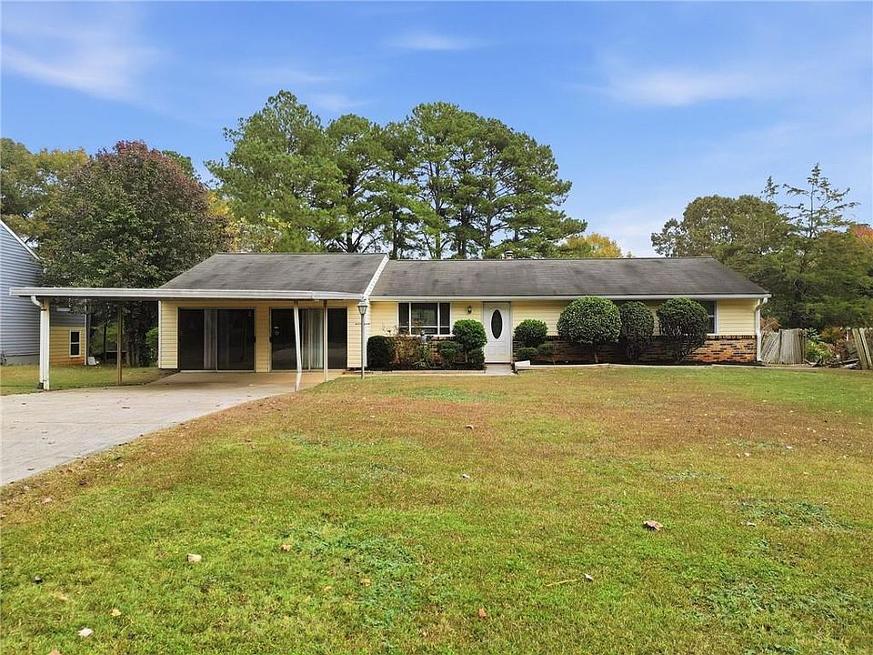 Fantastic ranch home just off Sandy Plains Road in Marietta. This 4-bed, 2-bath ranch is located in the highly sought-after Sprayberry school district. You’ll walk into the main living space that combines the living room and dining room. The kitchen and laundry closet are tucked just behind the dining area. To the right, you’ll find the bedrooms: a master suite plus two additional bedrooms sharing the other full bath. On the opposite side of the home, there is a separate family room with a fireplace for a cozy feel. A large bonus room could serve as a fourth bedroom. Other highlights include a level lot, covered back patio, and a two-car carport.