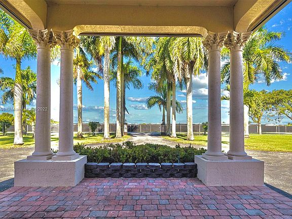 Architectural masterpiece home features 4 bed & 3 baths, volume ceilings & marble floors throughout accentuate the split floor plan with an amazing looking master suite, large kitchen, formal dining & Florida room. Property has plenty of natural light due to the extra large impact windows all around. There is a 300 SQ FT. covered porch & 2 car garage. The GUEST HOUSE is a 1 bed 1 bath 1,100 SQ FT. structure, sitting on a 61,420 SQ FT. lot w/fully grown tropical palms & a variety of fruit trees. The zoning allows horses & livestock given residents agricultural & equestrian access. As a bonus, house comes equipped w/a sophisticated, laser technology, water filtration system that provides one of the cleanest & purest water you could ever find in s.fla as well as a full house Auto generator.