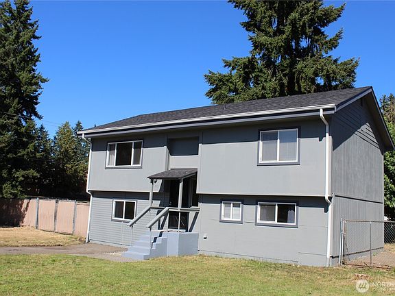 Updated home on large corner lot with no HOA featuring brand new exterior paint, interior paint, and flooring. Upstairs you'll find the living room, kitchen, dining room or office, one full bathroom and two bedrooms. Downstairs there are two bedrooms, one half bathroom, a utility room, a large bonus/rec room that can be converted back into a garage or be a 5th bedroom. A brand new 30-year roof was professionally installed less than a year ago. All appliances stay with the home including the washer & dryer. Off the back of the house there is an oversized deck that is fully covered and below that a large patio. The backyard is fully fenced with room to park an RV or extra vehicles behind the vehicle gate. Close to schools, shopping and JBLM.