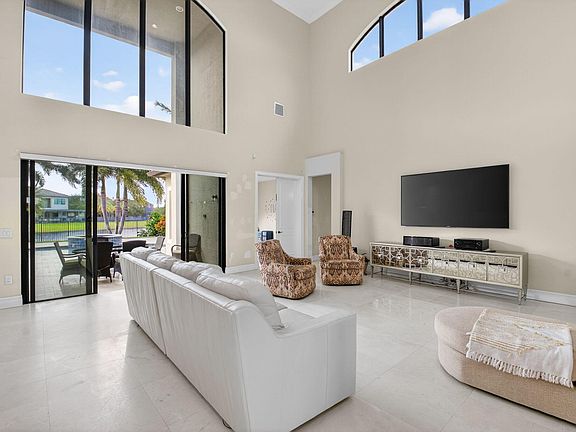 Stunning two-and-a-half-story Sydney Lakefront Estate with a resort-style pool and $300,000 in luxury upgrades. This exquisite home features 4 bedrooms and 5 full bathrooms, offering sophistication, comfort, and breathtaking lake views.The grand entry opens to a formal living room with captivating views of the pool and lake, setting a serene and elegant tone. The main floor includes a family room, formal dining room, modern kitchen, breakfast area, playroom with direct pool access, and an ensuite guest room with a private atriuma''ideal for visitors or multigenerational living.The great room showcases soaring double-height walls with natural light streaming through hurricane-impact glass. Large sliders open to the screened, covered lanai for seamless indoor/outdoor Florida living, The chef-inspired kitchen features warm custom cabinetry, a center island with seating, a hooded 5-burner gas range with glass backsplash, top-tier stainless appliances, and an oversized walk-in pantry. A wet bar and butler's pantry make entertaining effortless.