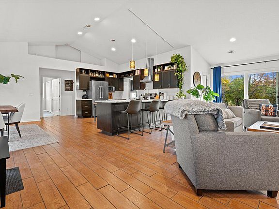 Beautiful, reimagined ranch home completely rebuilt from the foundation up in 2009 w/every major system replaced--plumbing, insulation, electrical, windows, doors, mechanicals, & roof. Recent upgrades include new AC unit & air handler, high-efficiency gas boiler, brick front patio & walkway, dishwasher, washer, dryer, 240-volt outlet in GA for EV charging. Open-concept layout. Soaring vaulted ceilings. In-floor hydronic heating. Main-level laundry. Sun-filled south-facing backyard. Private patio. Vegetable garden boxes. Chicken coop with option to adopt hens. Large shed-perfect for storage. Direct access behind property to the scenic New Berlin Bike Trail. Steps from Buena Park. Close to highways, shopping, dining & schools. This move-in-ready gem blends modern comfort w/outdoor charm.