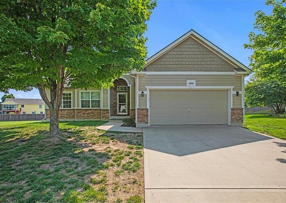 This stunning true ranch home is a must-see! One owner! Located in the sought-after Honey Creek Farms sub-division, this home sits on an oversized lot at the back of a quiet cul-de-sac. The home has been impeccably maintained and features an open floor plan, perfect for entertaining. Cozy up by the fireplace in the spacious living room, or enjoy the warm summer nights on the large covered patio or in the huge, level back yard. The main level boasts 3 bedrooms and 2 bathrooms, as well as a convenient laundry room with tiled floors. The kitchen is equipped with newer appliances, including a dishwasher, disposal, and microwave. The full, unfinished basement is dry and has been prepped for easy installation of an additional full bathroom with toilet and shower. Plus, with an egress window already installed, adding a 4th bedroom is a breeze! The home also features a one-year-old roof with a transferrable warranty. And, to top it all off, the home is located in the highly desired Basehor-Linwood School District. Minutes from highway access, this home has it all!