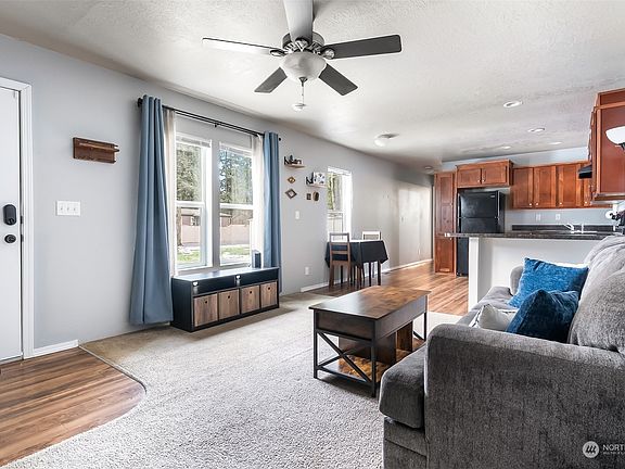 Check out this well-maintained 2018 manufactured home, it looks like new! Featuring 3 bedrooms and 2 baths, this single-wide home sits on a spacious ¼-acre lot, offering plenty of room to enjoy the outdoors. The large primary bedroom includes a walk-in closet and en-suite bath for added comfort. The kitchen has lots of storage. Perfect for first-time homebuyers, investors, or those looking to downsize, this property offers both charm and convenience. Located in the Nisqually Pines community of Yelm, you can enjoy community amenities like river access, a heated pool, clubhouse and parks. Concrete pad in front yard is ready for a gazebo, detached garage or shed. Don't miss this opportunity—schedule your showing today!