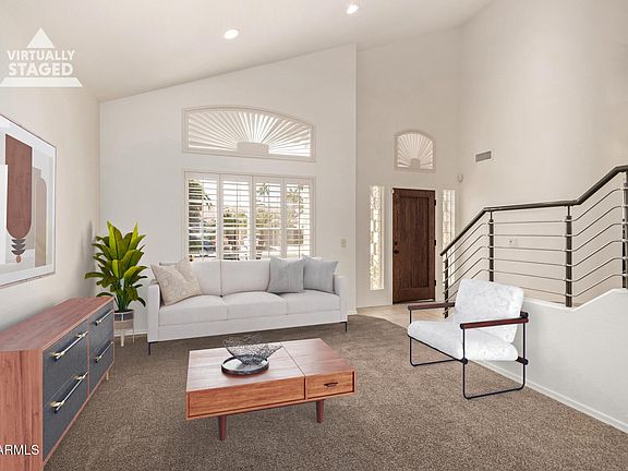 Welcome to this charming two-story Ahwatukee pool home with stunning mountain views! Enjoy spacious living areas with soaring vaulted ceilings, tile flooring, plush carpet in select rooms, plantation shutters, transom windows, recessed lighting, and a neutral palette. The upgraded kitchen is perfect for entertaining, offering granite countertops, stainless steel appliances, ample cabinetry, and a stone-accented island with breakfast bar. The serene primary suite features a bay window, walk-in closet, and dual-sink bathroom. The 2-car garage includes built-in cabinets, workbench, and utility sink. Relax in your private backyard with a covered patio, travertine pavers, built-in BBQ, and sparkling pool. Beautiful South Mountain location near top schools, hiking, dining, and freeway access. your private backyard, showcasing elegant travertine pavers, a built-in BBQ, and a sparkling pool to complete the picture. This gem is a must-see!