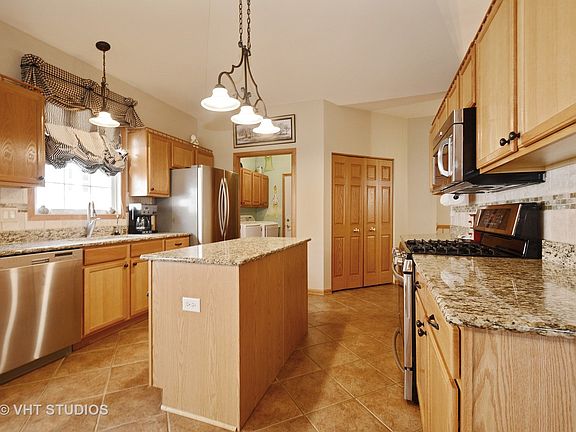 Comfortable over 55+ community. Everything you need is within a block! Including indoor and outdoor pool. 22 scenic lakes and ponds, walking & biking trail, fitness center, conference room, club, playground for grandkids! Penty of activities! Everything has been upgraded in this stunning ranch with partially finished lookout basement. As you enter the front door you will see an open floor plan, 6 panel doors, 9 foot ceilings, hardwood floors, and custom light fixtures throughout. The kitchen features a bay window and bump out with upgraded cabinets, ceramic tile, granite counters and island, tile backsplash, pantry and stainless steel appliances; the dining room is spacious and has a Palisades fan; the family room is warm and inviting with patio doors leading to the deck, custom blinds, built in shelves and 3 sided fireplace with heatilator; the living room has plenty of windows, custom blinds, hardwood floors. Two master bedrooms! One has a bay window w/ bump out, ceiling fan, his and her walk in closets and private bath with soaker tub, separate shower with extra shower heads, double glass sinks with upgraded faucets. The other has a walk-in closet, a ceiling fan and shared bath with double sinks and a two seated shower.