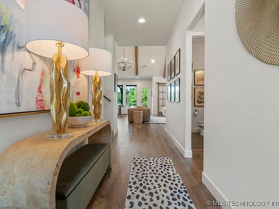 Complete privacy and tranquility in this gorgeous home located on a greenbelt! Open concept Great Room with high vaulted ceilings, providing a perfect space for entertaining and various furniture layouts. South facing living room is flooded with natural light from the high placed fireplace windows and a bank of windows along the whole back of the house providing the views of the wooded area behind. Custom features and finishes abound starting with the gorgeous kitchen. STUNNING Dark green parameter cabinets set high style marks and the huge island with gorgeous quartz counters accommodates plenty of seating. Another room (could be formal dining or office and also with a fireplace) offers additional living and entertaining space on the main level and also provides access to the back yard. In addition, there are 2 bedrooms on the main level and all bedrooms have ensuite bathrooms! Primary bedroom features vaulted ceilings and a beautiful view of the outside. Primary bath features oversized shower, a free-standing tub, and is connected to the large Primary closet that, in turn, connects to utility room. Upstairs opens up into a large game room and 2 additional bedrooms and 2 full baths, making every bedroom have their own private bath. This home is gorgeous and has many gorgeous details that makes it unique!