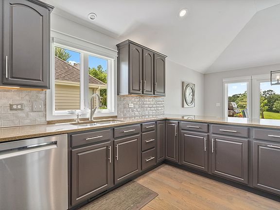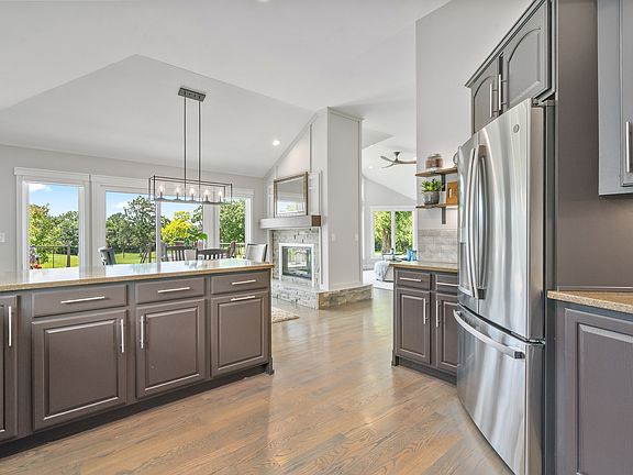 Nestled on a premium golf course lot overlooking the scenic fifth hole of Broken Arrow Golf Club, this absolutely stunning, fully remodeled ranch exudes luxury, style, and sophistication at every turn. Designed with impeccable attention to detail and today's most desirable finishes, the home showcases rich oak flooring, elegant recessed lighting throughout, and a seamless open layout centered around a dramatic great room with a full wall of windows overlooking the golf course and a two-sided stacked stone fireplace that graces both the great room and formal dining area. The showstopping kitchen is a chef's dream, featuring 42-inch dark cabinetry with crown molding, a sleek subway tile backsplash, gleaming granite countertops, and high-end stainless steel appliances. Step outside from the dining area onto a composite, maintenance-free deck (2022) shaded by a motorized retractable awning-perfect for relaxing or entertaining beside the fire table while enjoying tranquil golf course views. Invisible fence surrounds the yard for peace of mind for your pets. The private main-level office features a double-door entry, and the hall bath is appointed with an oversized shower, white quartz counters, and a dark vanity. The lavish master suite offers a decorative ceiling, walk-in closet with a professionally installed custom California Closets organizer, and a spa-caliber bath with a soaking tub, oversized shower, and double dark vanity with quartz tops. An open staircase leads to the expansive basement with a workshop and plumbing rough-in, ready for your vision. Energy-efficient upgrades include new vinyl windows (2024) with Low-E3 glass and a QuietCool whisper-quiet whole-house fan (2019). Additional updates include: roof (2013), new furnace (2019), new A/C (2021), new garage door with belt-drive lift motor (2019), soffit lighting around the perimeter of the home (2019), concrete driveway (2019), custom horizontal sheer shades by 3 Day Blinds throughout the home (2020), stamped concrete patio for additional entertaining (2023), amplified digital TV antenna mounted in the attic (2019), providing wired access to free local channels throughout the home and so much more-including newer refrigerator (2023), built-in microwave (2024), and dishwasher (2025)-all combining to deliver refined living with every imaginable comfort in an extraordinary golf course setting.