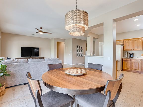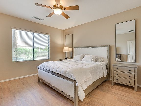 Furnished short term rental with a 2 month min. in Sun City Grand. Sun City Grand is a 45 and up Retirement Community which has pools, 2 Rec Centers with wonderful work out facilities and classes, Tennis, Golf, Pickle Ball, Arts & Crafts, restaurants, live music and many functions to enjoy. The rec card is available to renters for a fee. This house has king bed in primary suite, 2 queen beds in the other 2 rooms inside the house along with another full bathroom. The detached casita has 2 XL twin beds that can be made into a king with full bathroom and small walk in closet. This home is very clean and clutter free. The furniture is all current and new. No pets and no smoking of any kind. Internet and trash are include, utilities are additional.