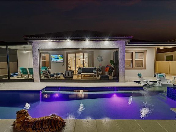 WELCOME TO YOUR FLORIDA DREAM PRIVATE POOL HOME! CUSTOM ONE YEAR NEW, HEATED, CHILLED, SPECTACULAR POOL FEATURING A RAISED SPA PLUS AN OVERSIZED BUBBLING SUNSHELF ISLAND. FINE DETAILS SUCH AS A SHEER DESCENT WATERFALL, COLOR CHANGING LIGHTS AND AN EXTENDED LOUNGING BENCH WENT INTO MAKING THIS HUGE (37 FT LONG) POOL A TROPICAL OASIS! THE EXTENDED PATIO IS WELL LIT AND VERY SPACIOUS. ENJOY THE OVERSIZED POOL DECK WITH ITS GORGEOUS 24 X 12 CUSTOM SHELL LOCK PAVERS. FULLY FENCED BACK YARD FOR COMPLETE PRIVACY! INSIDE YOU WILL FIND A WONDERFUL, WIDE OPEN FLOOR PLAN! STUNNING LIGHT FIXTURES AND CEILING FANS THROUGHOUT. THE KITCHEN HAS GORGEOUS WHITE QUARTZ COUNTER TOPS WITH SPARKLING CRYSTALS (INSTALLED LAST YEAR), EXTENSIVE RECESSED LIGHTING, CUSTOM BACK SPLASH AND STAINLESS STEEL APPLIANCES. REFRIGERATOR, DISHWASHER, WASHER AND DRYER ARE HIGHLY UPGRADED. THE FLEX ROOM MAKES AN EXCELLENT HOME OFFICE, HOME THEATER, OR 4TH BEDROOM WITH AN EASY CONVERVSION. CROWN MOLDING IN MAIN LIVING AREAS. THE PRIMARY SUITE IS A BEAUTIFUL, PEACEFUL RETREAT WHICH FLOWS TO A DRAMATIC ENSUITE BOASTING AN ENORMOUS WALK IN SHOWER, GARDEN TUB FOR TWO, CUSTOM BUILT IN CABINETRY AND CUSTOM WALK IN CLOSET WITH PLENTY OF SPACE! SAY GOOD MORNING TO YOUR NEIGHBORS FROM YOUR CHARMING COVERED FRONT PORCH! TONS OF STORAGE IN THE 3 CAR GARAGE PLUS AN UPSTAIRS STORAGE ROOM. THIS MODERN, NEUTRAL HOME CAN BE SOLD FURNISHED OR UNFURNISHED. CONTEMPORARY STYLING, LUXURIOUS FINISHES, AND A GREAT COMMUNITY MAKE THIS A HOME YOUR FAMILY WILL WANT TO VISIT OFTEN! MEDLEY AT SOUTHSHORE BAY IS A PRIVATE, GATED, 55+ FANTASTIC COMMUNITY WHERE YOU CAN DO AS MUCH OR AS LITTLE AS YOU WANT. THE RESORT STYLE CLUBHOUSE FEATURES A BALLROOM, GYM, CARD ROOMS, SHOWS AND ENTERTAINMENT. LIVE MUSIC, DJ AND KARAOKE PARTIES, PICKLE BALL, BOCCE BALL, A TROPICAL BEACH ENTRY POOL, INDOOR AND OUTDOOR DINING AND FULL BAR SERVICE! YOU CAN ALSO PARTICIPATE IN MANY CLUBS AND OUTINGS WITH YOUR NEIGHBORS. AS AN OWNER IN MEDLEY YOU ALSO ENJOY FULL MEMBERSHIP AT THE 5+ ACRE SOUTHSHORE BAY CRYSTAL LAGOON! IN ADDITION TO THE TOT SPLASH PAD, OBSTACLE COURSES AND SWIMMING, YOUR WHOLE FAMILY WILL HAVE A BLAST AT THE MOVIE NIGHTS, POKER NIGHTS, CIGAR NIGHTS, DANCE PARTIES, FULL BAR, SWIM UP BAR, FOOD TRUCKS, FIREWORKS DISPLAYS, HOLIDAY CELEBRATIONS AND GOLF CART PARADES! ISN'T THIS WHY YOU MOVED TO FLORIDA? ALL DIMENSIONS APPROXIMATE. ALL INFORMATION CONTAINED HEREIN DEEMED ACCURATE BUT SUBJECT TO BUYER VERIFICATION. ONE TIME $2150 CAPITAL CONTRIBUTION DUE FROM BUYER AT CLOSING. OWNER IS LISTING AGENT.