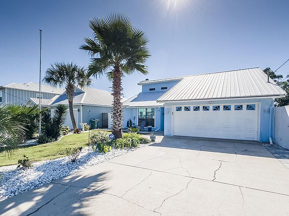 MOVE IN READY, IMMEDIATE OCCUPANCY, AND PRICED TO SELL! So close to the beach and NO HOA fee! WEST END , JUST JUMP IN YOUR GOLF CART AND GO TO THE BEACH! THIS IS A MUST SEE! Step into this beautiful remodeled home with comfort, style & so many upgrades. Just a quick 3 minute golf cart ride takes you to the sandy white beaches, or you can unwind in your swimming pool right at home. Upon entering the home you will immediately notice the attractive porcelain tile which is definitely an eye catching feature. The modernized kitchen boasts newer features such as cabinetry, impressive quartz counter tops and a coordinating backsplash. The sleek newer appliances along with a contemporary design are perfect for both cooking & entertaining. You will also find a new water heater. The home is thoughtfully equipped with a culligan water softener system, a modern nest thermostat and also a ring door bell bringing convenience and peace of mind. Just off the kitchen is the living area featuring a soaring ceiling that creates an open feel complemented by warm blue tones and again the elegant porcelain tile flooring. All three bedrooms have newer carpet adding warmth & comfort. A cozy sunroom with all new windows invites natural light creating the perfect spot to relax. Stepping out of the sunroom you'll discover a beautifully landscaped backyard retreat featuring an all new painted swimming pool and you will love the new energy efficient pump and filter too. An outdoor shower was installed for your convenience. ALL NEW WINDOWS have been installed. Notice the attractive man cave/she shed that has been reinforced and has an attached shed for extra storage. The front yard is picture perfect and has a spacious driveway for extra vehicles or boat parking. The freshly painted exterior has a soothing coastal finish adding to the homes charm. The property includes a sprinkler system & two separate water meters for efficient lawn care. Just 5 minutes to Pier Park, the new Dolly Parton Pirates Voyage Dinner Theater, the exciting Top Golf dining and more, it is an unbeatable location! Note: . DON'T FORGET THE BEACH IS SO CLOSE! Welcome home! You won't be disappointed. NO SHORT TERM RENTALS ALLOWED.