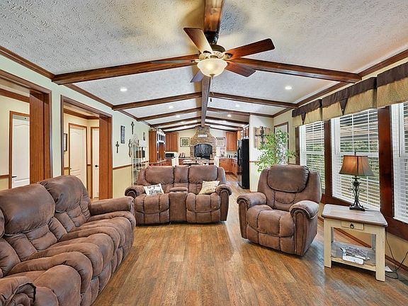 Enjoy your privacy with this practically brand new home! These perfectly set up 2 acres sit at the end of a quiet dead end street and are ready for you to bring your horses home into the newly fenced horse pasture with stalls and all. The home itself sits on a 6 inch concrete slab with covered porches on both the front and back that extend the full length of the home. You're instantly welcomed by beautiful floor to ceiling built in's in the foyer area when you step inside. Space is maximized with this gorgeous open floor plan and the stone fireplace in the corner perfectly matches the stone around the stove top in the kitchen giving it that great rustic, brick oven look. If you need kitchen storage, the 30 cabinets should take care of that! Oversized kitchen island complete with a breakfast bar and large closets in all bedrooms. The master bath is fit for royalty with the his and her vanities, large soaker tub, and a separate shower so large it couldn't be photographed! Outside you will also find a large elevated workshop with 2 covered lean to areas to park your toys and equipment under. There is also an additional unfinished building ready with electricity, water, plumbing, etc for you to turn into a studio apartment, work room, whatever you need! Schedule your appointment today for this slice of country heaven!