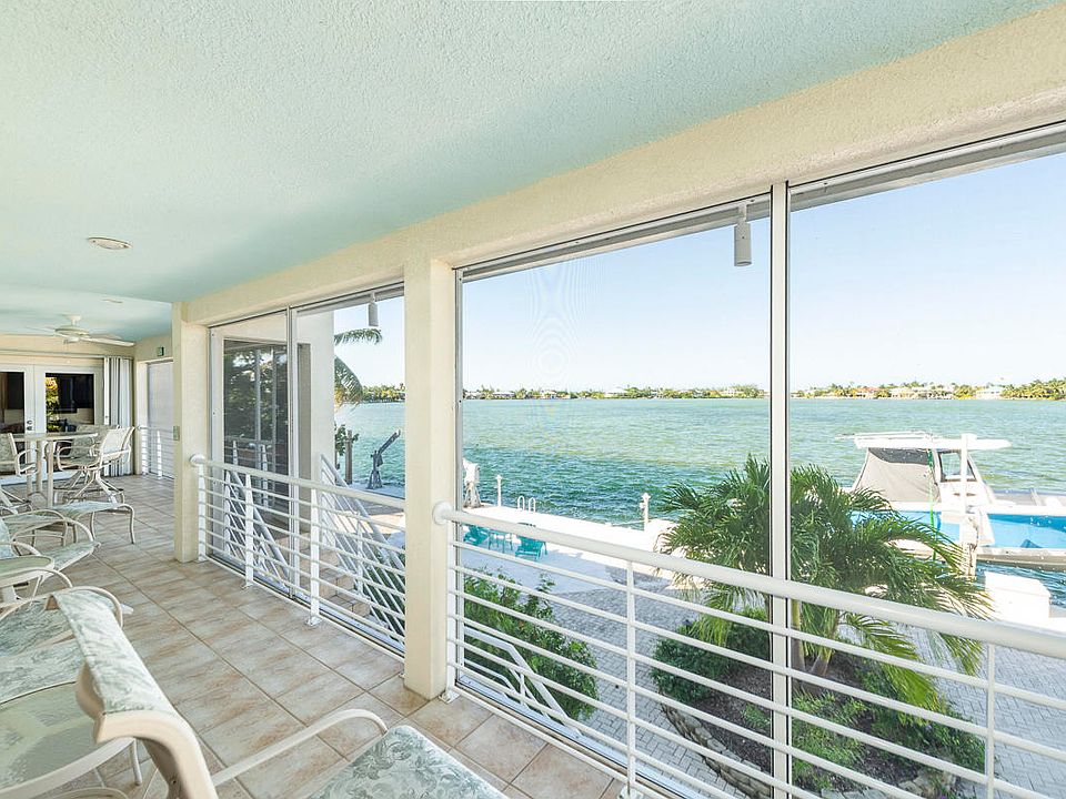 Your perfect balance of land and sea, privacy and community. Enjoy the extra space afforded by an oversized outdoor living area, complete with sophisticated landscaping design and a pool overlooking the clear waters of the Keys. The edge of the property offers a 100' sea wall, ready for play with a brand new boat lift that will accomodate 30' boat. Indoors, you'll find four spacious bedrooms, three baths, a freshly renovated kitchen and a great room ready for entertaining. Every space in this South Point property offers grand views, but the screened balcony above the pool and the third level master suite overlooking the backcountry waters may be your new favorite spots