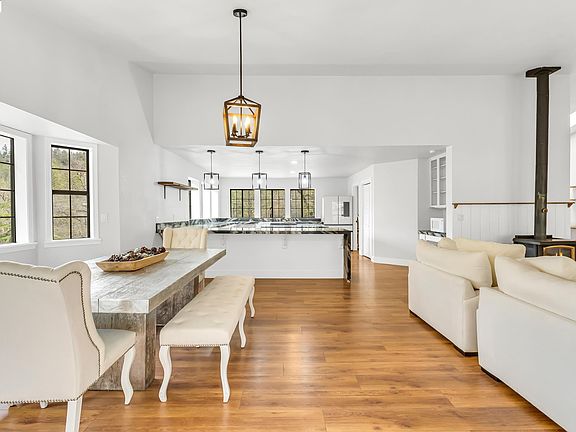 Beautifully updated modern retreat featuring a chef’s kitchen boasting a waterfall island, gas cooktop, farmhouse sink, and huge pantry. Primary suite offers a spa-style bath with dual vanities and rainfall shower for two. Bonus room ideal for office, gym, studio, or 4th bedroom. Expansive deck for relaxing and wildlife watching. Newer roof, whole-house fan, and a stylish 3-car garage. NO HOA and massive under-house storage. Close to golf, hiking trails, rivers, and lakes. Enjoy treetop views in your gorgeous mountain escape!
