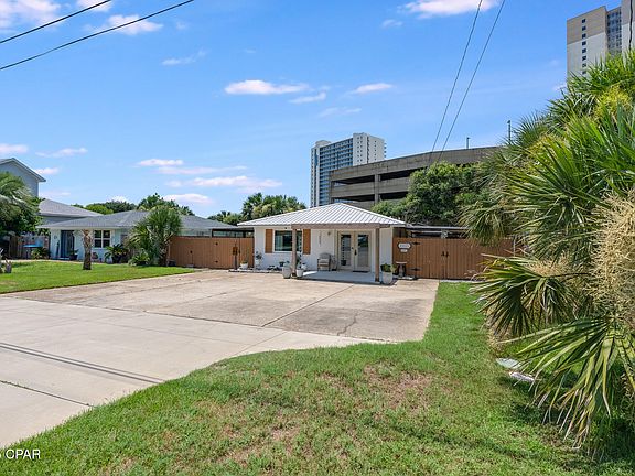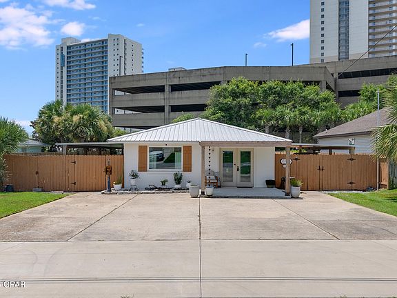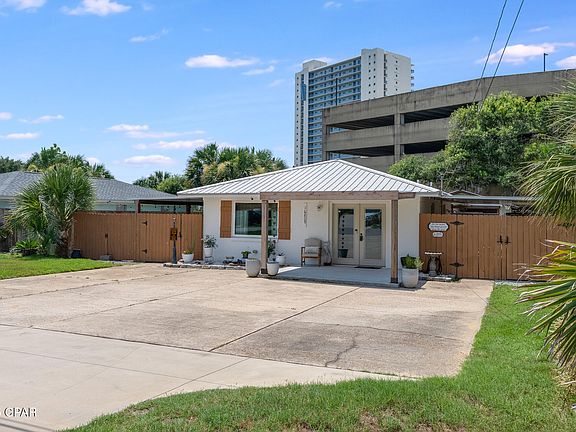 Adjusted Price!!! Stop scrolling - there is not a lot of homes like this on the beach, literally! This isn't just your average beach house - it is your ultimate coastal living experience every. single. day! You can enjoy sun-soaked days and breathtaking sunsets at your leisure, nearby attractions like Pier Park for shopping and dining, Frank Brown Park for outdoor activities, and the exciting Pirate Voyage Dinner Show and Top Golf. There's always something to do, and should things get a little too lively, a new hospital being built just around the corner! Home features spacious and inviting outdoor living with backyard oasis. The expansive, fully fenced backyard is your personal sanctuary, featuring a beautiful outdoor shower with bathroom, a workshop for your hobbies, and a detached bonus room that can serve as a guest suite or private retreat. The covered pavilion features a custom bed swing that invites you to relax and unwind, while LED lighting sets a magical ambiance for evening gatherings with surrounding outdoor sound system. THIS HOME BUILT TO LAST and has been meticulously upgraded with a new roof, hurricane proof doors and windows (all 2022), kitchen cabinets, LVP flooring throughout, HVAC and ductwork, and a hot water heater (all 2021), ensuring you enjoy modern conveniences and peace of mind, while keeping low rate for the insurance. The extensive, high-quality renovation included the difficult removal of all popcorn ceilings, showcasing the owner's great effort and pride! The spacious lot provides plenty of paved parking, ideal for guests or additional vehicles. This home isn't just a place to live; it's a lifestyle choice that offers both relaxation and adventure. Whether you're hosting friends, enjoying a quiet evening in the hot tub, or taking a leisurely stroll to the beach, every day feels like a vacation.