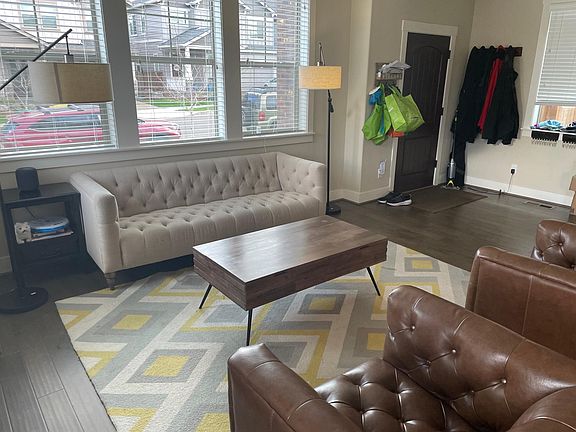 Beautiful corner home in River Terrace with natural light. Three stories: garage bottom level; kitchen, dining, living room, bonus room, half bath second level; 4 bedrooms, 2 bath, laundry upstairs. Close to Progress Ridge, Nike. Quartz counter tops, wood floors, baseboard molding, upgraded carpet stairs and upstairs, central AC, laundry room upstairs, neutral pain colors. Two-car garage with installed overhead storage. Landscaped side yard. Built 2018. Major appliances included. Wonderful neighborhood. Parks close-by. Rent $3,000 plus utilities (water, trash, gas, electric). Deposit $3,000. $50 lease application fee $3,000 deposit (one month's rent) No pets No smokers Proof of renter's insurance required and must be maintained throughout lease HOA covers front lawn maintenance Credit and criminal background check run in application process