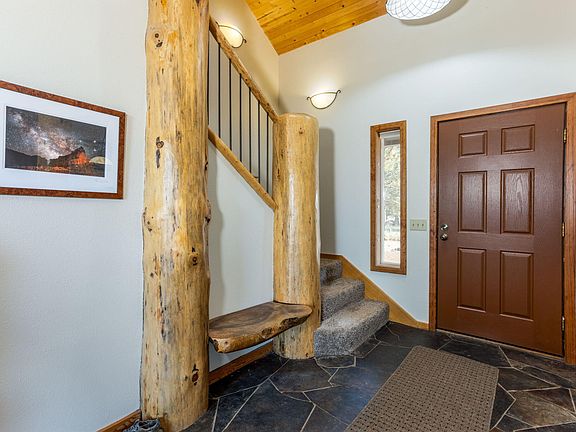 Home is a one-of-a-kind gem with artistic flair! Charming log accents throughout create a warm and inviting atmosphere. 4 bedrooms, 2 baths, 2406 square feet. Mountain views from the living room and the primary bedroom's expansive windows. Tranquil small pond in front frequented by daily quail visitors. 4.5 acres offers plenty of space for outdoor activities. Very large shop with finished guest area upstairs and bath. New well in 2023. New roof on house in 2024. Septic was replaced in 2015. Take a look, there's a lot to love!