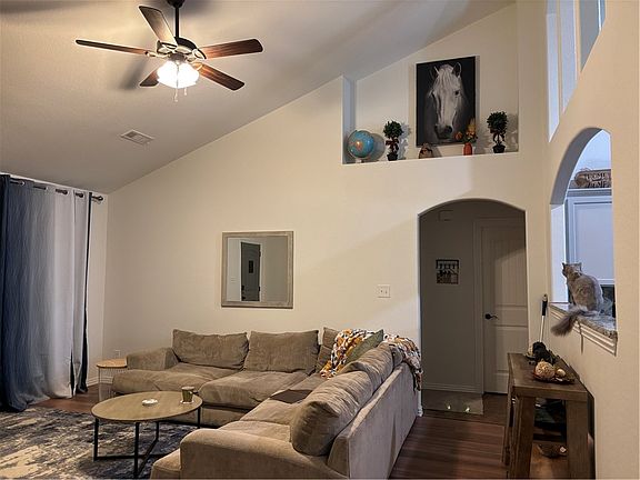 This house offers a split 4 bedroom/2 bath plan with a tiled shower in the master bath, and a jetted whirlpool tub perfect for soaking. The eat- in kitchen is large and spacious, offering tons of counter and cabinet space. The soaring ceilings make this 1601 square foot house feel much bigger. It is a decorator's dream with tons of alcoves and nooks with which to display treasures or art. There is a 3 car garage to store everything you need or want. The level backyard offers plenty of space for anything you want to do with it, and includes a big covered deck perfect for enjoying a sunrise, or for beating the heat in the afternoon. The carpets were replaced this year and have a 20 year warranty transferable to the new owner. There is also new LVP in the living room and hall, and the LR/DR and each bedroom were professionally painted this year. Come check out this peacefully tucked away home and see why you want to make it your own!