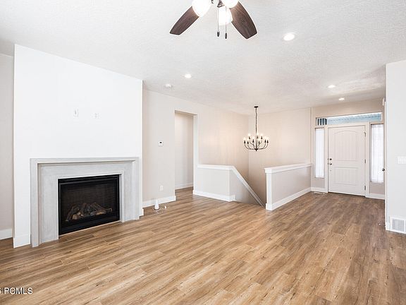 Tucked in a quiet neighborhood, this nearly new Heber home-just 3 years old-offers all the benefits of new construction without the wait. Enjoy 9-foot ceilings on both levels, creating an open and inviting atmosphere. The kitchen features granite countertops, upgraded maple cabinetry, a tile backsplash, and hardwired cabinet lighting above and below, with added storage in the island. The primary suite includes a large bedroom and a beautifully designed bathroom with a large soaking tub and separate shower. The laundry room includes both gas and electric dryer hookups for added flexibility. The basement is perfect for entertaining with a wet bar, a newly updated vanity in the bathroom, brand new carpet, and three more generously sized bedrooms. The basement living room is also wired for surround sound. A new furnace serves the full 3,200 sq ft, plus space heaters were added in each downstairs bedroom for extra comfort. Additional features include a Simply Safe security system, 60-gallon water heater, water softener, reverse osmosis drinking water system at the kitchen sink, locking window well covers, and heat tape. Outside, enjoy full landscaping with apple and peach trees, Stonehenge fencing, a beautiful pergola, and wiring for lights under the eaves. This home blends modern upgrades, smart features, and outdoor beauty in a great Heber location.