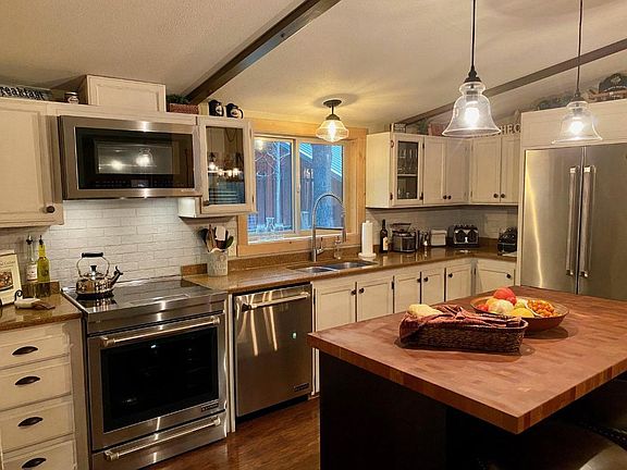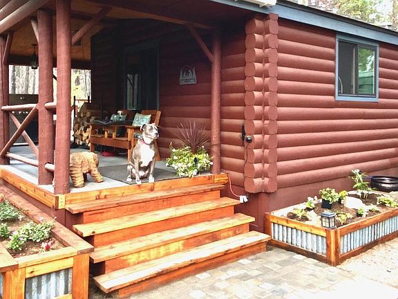 Cute cabin in the woods! 2 bedroom 2 bath home sitting on 5 beautiful acres and is amazingly charming.. The sellers have done amazing upgrades including the kitchen, bathrooms, painting, flooring, exterior decking and so much more. If your looking for a turn key purchase this is it they left no stone unturned. The upgrades were well done with top of the line finishes. There is a 2 car detached garage and a detached hobby shed. This home is also within a few hundred feet of the USFS...