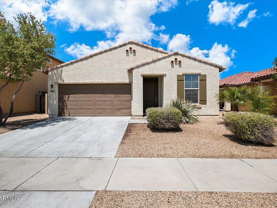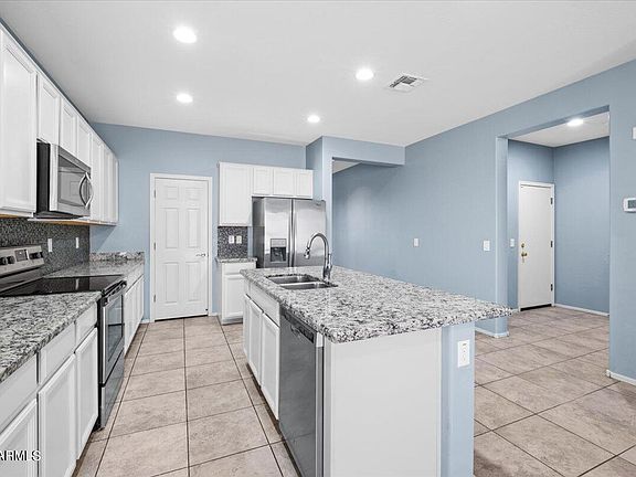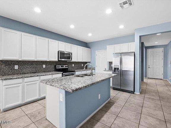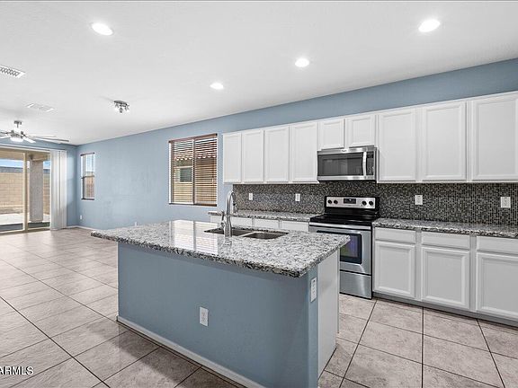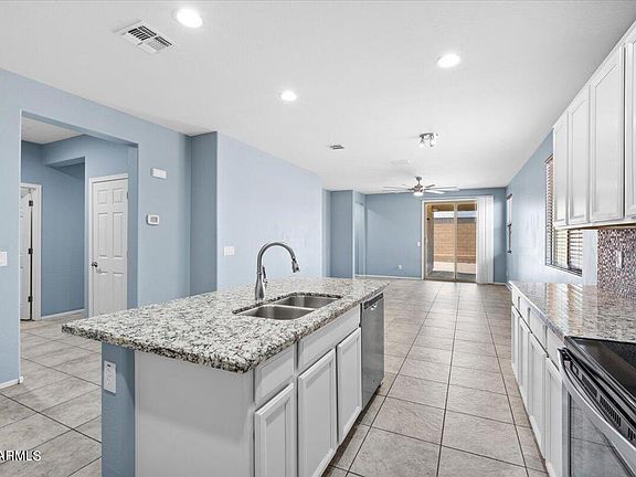 Located minutes from the 303 and I-10, this pristine single story home in the Community of Glen River at Canyon Trails. A well maintained home featuring beautiful tile floors, separate laundry room, an additional office area that can be enclosed and a spacious chef's kitchen with white cabinets, granite counters, mosaic tile backsplash, and a large prep island. Large primary suite with a walk in closet and an en-suite with dual sinks and a walk-in shower. The private backyard has a covered patio and no homes behind. Recently interior painting along with new carpet, this immaculate move in ready home is available to purchase now!!