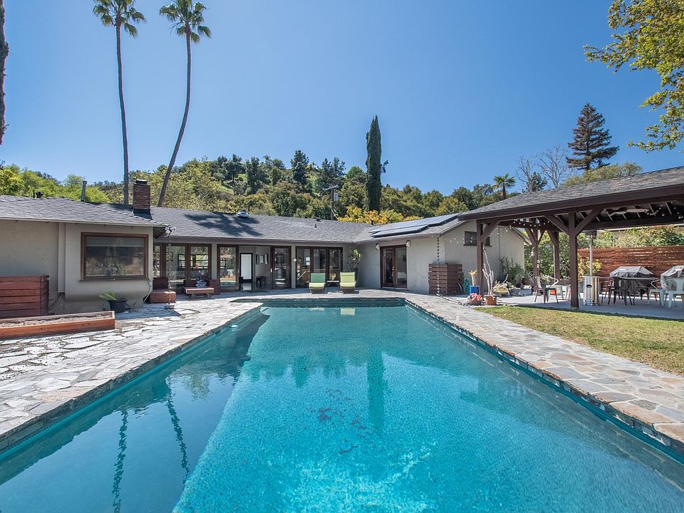 Available for move-in around April 1st. Welcome to this stunning contemporary 3 bedroom 2.5 baths residence located south of the boulevard in the prestigious Encino neighborhood. Minutes away from the restaurants on Ventura Boulevard, Whole Foods, Gelson's market, and a short 3 minute drive to sought after Lanai Elementary school, the location offers easy access to anywhere in the valley and a scenic drive over the hill to the Westside. Beautifully landscaped drought resistant front yard and stone stairs leading to the front entrance complete the curb appeal of the home. Upon entering the formal living room a wall of windows bring the outdoors inside with expansive views of the pool and backyard. The open floorplan has space for large furniture or multiple seating areas around the fireplace. Modern sleek design kitchen features abundant lower cabinets with soft close drawers, kitchen island, Caesarstone countertops, stainless steel Viking appliances, Bosch dishwasher, and a built in pantry. Right off the kitchen, you will find a formal dining area with more storage cabinets and a family room with built-in shelving. There is a large powder room available for your guests. Spacious master bedroom suite is located in the left wing of the house away from the other two bedrooms and will fit a king size bed and ample room for additional furniture. It features vaulted ceilings, walk-in closet, ceiling fan and french doors opening up to the backyard. En-suite master bathroom comes with a dual vanity and a glass walk-in shower. The other two large bedrooms are on the opposite side of the house and share a hallway bathroom with a dual vanity and shower over tub. There is a separate laundry room that also can serve as a mud room with extra storage space. Large entertainer's backyard with a sizeable heated pool, and built-in garden beds with irrigation. Spacious seating area under gazebo providing shade during the hot summer days and fairy lit dining at night. There is also space for a storage shed in the side yard. Driveway parking available for multiple cars. The home has many more upgrades and features, such as hardwood floors throughout the house, plush carpet in the bedrooms, recess lights, dual pane windows, central A/C and heating, ready to use plug for electric cars and solar panels! All appliances are included. Please contact Anastasia now to schedule a private showing now. Available for move-in around April 7th. Owner pays for pool and gardener service. Tenant is responsible for all utilities (lower electric bill with solar panels!). NO smoking, NO marijuana. Pet Policy: 2 pets max, 45 lbs weight limit. $50 pet rent per month and $500 pet deposit for each pet.