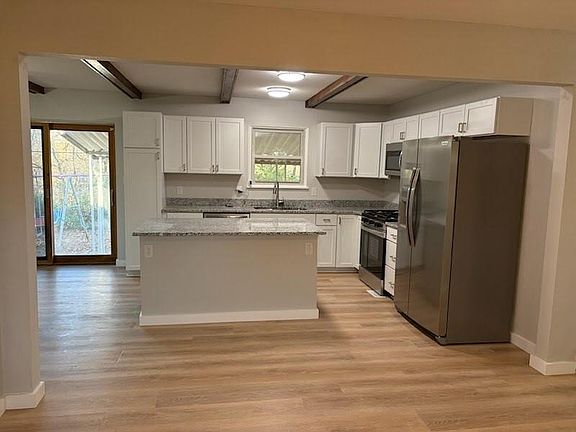 This beautifully updated 3-bed, 2-bath home blends modern finishes with a super functional layout, including two non-conforming bedrooms and a second living space in the finished basement. The main level feels bright and fresh with new vinyl plank flooring, a large dining area, and a spacious kitchen featuring an island, granite countertops, new cabinets, and all-new appliances. Downstairs offers brand-new carpet and the perfect setup for a media room, playroom, or home office. Outside, enjoy a covered patio overlooking a fully fenced yard with a storage shed—plus peace of mind knowing the roof and gutters are brand new. This one checks all the boxes for updated, move-in-ready living with space to spread out.