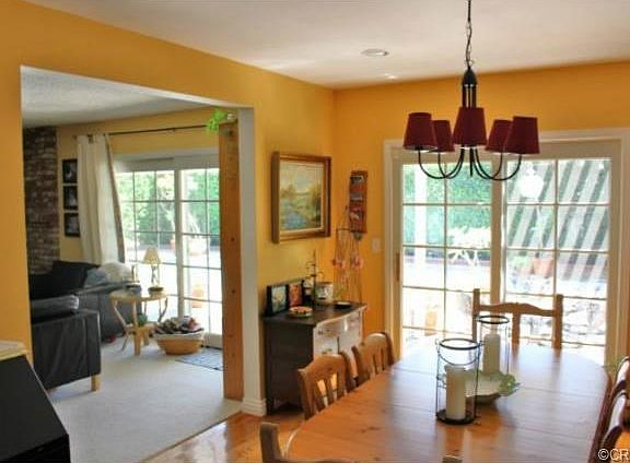 Charming Granada Hills 4 bedroom pool home with large covered back patio for entertaining. A wonderful tree lined street with easy freeway access. Fresh and bright open floor plan. Kitchen flows into beautiful family and dining rooms, both with sliders to the back yard and pool. Master upstairs bedroom with updated bath. Second upstairs bedroom is converted to an open loft. Two more bedrooms downstairs, one with a direct access slider to the back patio and pool area. Hardwood floors in downstairs living areas. Garage has been converted to home theater with projection screen. Private and lush backyard. Beautiful curb appeal with a landscaped front yard and white picket fence to call home.