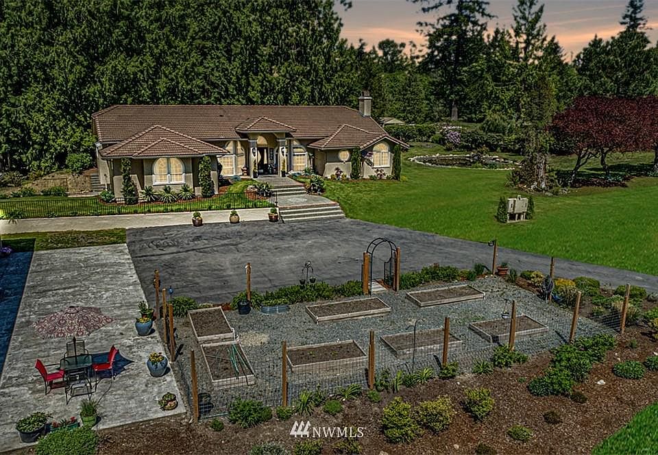 Stucco rambler, tile roof with in floor heat, two fireplaces, walk in showers. A 2400' shop, pond, remodeled kitchen, baths and master closet.