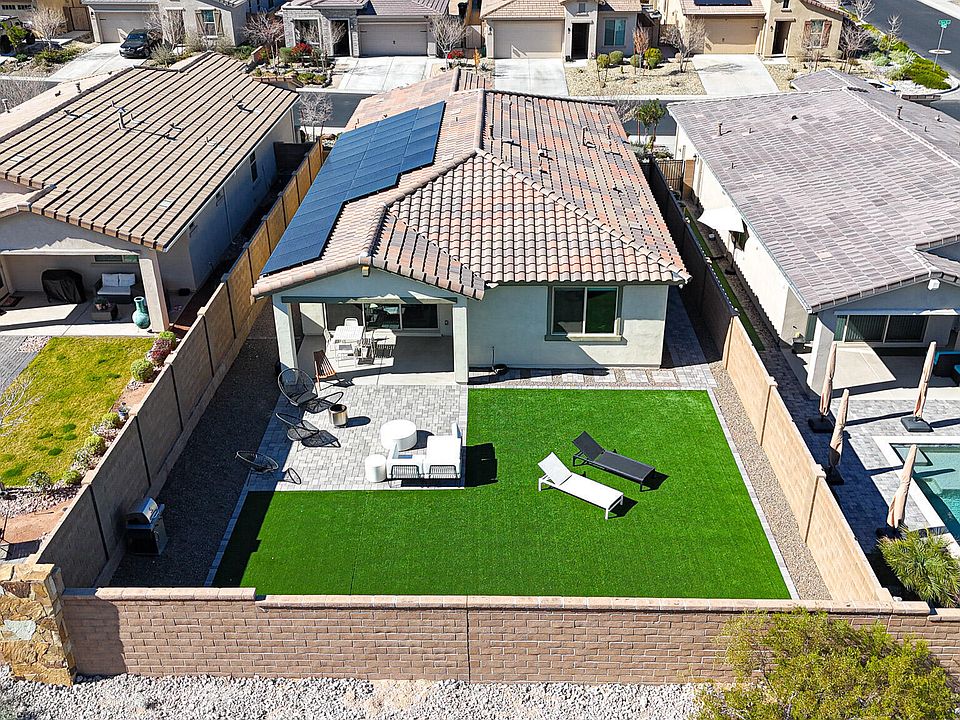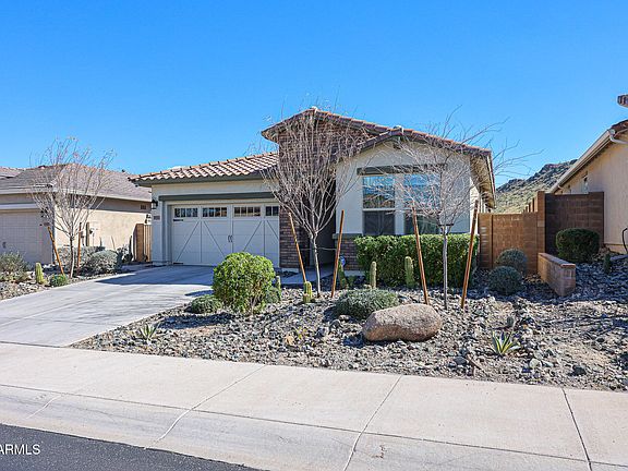 Step into a realm of tranquility and awe-inspiring vistas with this recently constructed 3-bedroom, 2-bathroom energy efficient abode. Embrace the benefits of a fully owned solar system! Savings are approximately $2,700/year with the 10.9KW system! Situated in the picturesque Master Planned Community of Estrella, this residence embodies the epitome of modern living fused with natural splendor. Upon entry be greeted by a split floorplan harmonizing with an open-concept layout, seamlessly blending entertainment and practicality. The heart of the home, the kitchen, boasts premium upgrades including sleek grey shaker cabinets, a gas stove, a luxurious waterfall honed granite island, a single basin granite sink, contemporary tiled backsplash, and elegant gold pulls. Revel in the convenience of upgraded tile flooring throughout the entire home, eliminating the hassle of carpet maintenance. Step through the multi-slider doors to behold the expansive east-facing backyard, a sanctuary of lush artificial turf and an extended paver patio, ideal for gatherings and tranquil moments of solitude. The crowning glory of this abode lies in its breathtaking views of the majestic Estrella Mountains. Whether witnessing the sunrise or basking in the amber glow of twilight, the panorama from your doorstep will never cease to captivate. Embrace resort-style living within the vibrant community of Estrella, offering a plethora of amenities including two residents' centers, community pools, fitness facilities, lakes, numerous parks, and miles of hiking and biking trails. Indulge in culinary delights at nearby restaurants, stock up on essentials at the grocery store, and access medical services with ease. Experience the essence of harmonious living where every day feels like a retreat amidst nature's splendor.