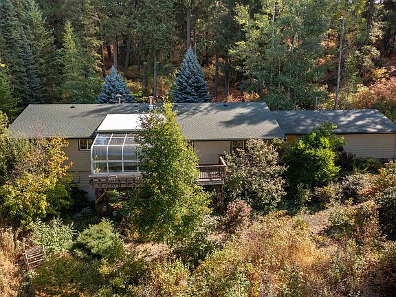 Privacy, serenity & beauty will capture your heart in this Green Bluff oasis nestled on 7.85 acres of lush foliage. The great rm open concept & updated kitchen are focal points of this ranch style home. Gorgeous hickory cabinets, S/S appliances & butcher block island highlight the kitchen. New LVP flooring is found throughout, & the wood stove & spectacular sun rm will be enjoyed for multiple seasons. Main floor includes primary bedroom w/ its own bath & double closet & slider to the deck, & 3 additional bedrooms, laundry area & a large multi-purpose rm that could be used as an office/craft or family rm. Unfinished walk-out basement offers 5th bedroom & tremendous possibilities. 2 car attached garage & 30' X 48' shop are a bonus. Spectacular ornamental gardens adorn the exterior. Upgrades & amenities found throughout – newer septic system, new architectural roof in 2019, serviced heat pump, vinyl siding & vinyl windows. Never leave paved county road to your home--- 500+ ft of asphalt driveway.