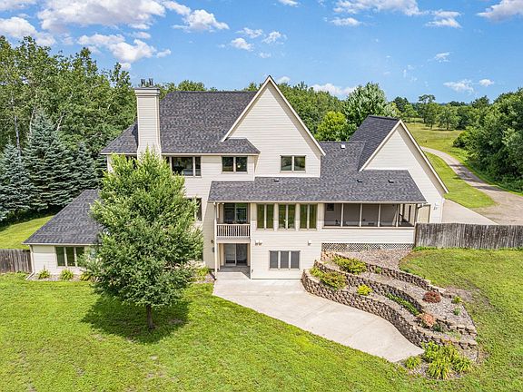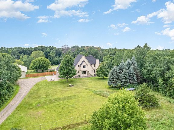 Impressive and private 20-acre estate is now priced at a VALUE PRICE! Features like your own private pond, woods, 55x75 pole shed that has a water pump, fans, heating, and additional electrical panel, extensive wood fencing, and area (with electric fencing) for horses or chickens! Panoramic views of the pond and woods from most living spaces with lots of wildlife like deer, ducks, turkeys, and more. The main level hardwood floors were just sanded and refinished to pristine condition and flow into the main level living room with a fireplace and ample seating space. Then head to the gourmet kitchen that offers lots of "surprises," including custom Cherry cabinets, pull-out drawers, pop-up stand for electric mixer, pantry, hidden shelving, broom closet with outlet, built-in cabinet for dish and glassware, & wine storage. The cooktop has 6 burners and a powerful Vent-a-Hood! NEW dishwasher and Double Oven. Plus NEW quartz countertops and oversized undermount stainless single bowl sink. Not only is there seating at the island and informal eating space in the kitchen, there is a separate formal dining room as well. The main floor office, with French doors, is equipped with a closet and could be used as a 5th BR. NEW carpet leads you up the stairs to 3 BRs (one is large enough to share) with the primary BR offering a "suite" experience. NEW LVT floors, fixtures, & quartz countertops with 2 separate sinks in the en suite. The custom & oversized walk-in closet is accessed here. The lowest level is a walk-out (to a spacious concrete patio). The 4th BR, with a private bathroom, has a walk-in closet too! Large windows again look out to the peaceful backyard that has an irrigation system...(flat enough yard for a pool??!). Many different possibilities in this open space and a bonus flex room with a closet so it could function as a 6th BR! The heating stove is propane & keeps it toasty in the Winter. THis level has the potential to house family members with their own private space. So many BIG-TICKET items have very recently NEW....furnace & AC, siding & roof, Speed Queen washer & dryer, Iron Filter, Water Softener, lift station pump, & air exchanger and numerous Marvin Windows. Also to be appreciated is the large 3-car garage that is heated with built-in cabinets and fresh paint. Truly a custom-built home to be proud of and enjoy entertaining or simply relaxing at your own peaceful retreat. Make sure to schedule enough time for your showing...there is a lot to see!