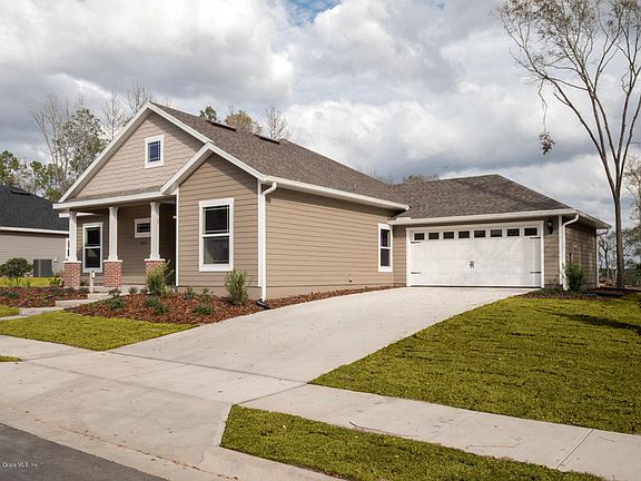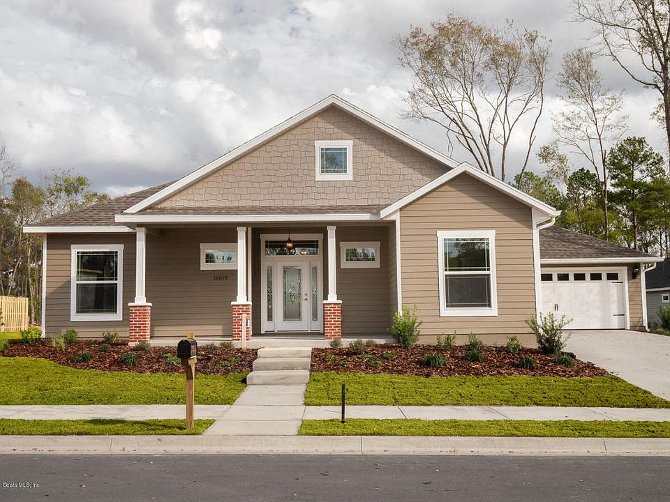 MOVE IN READY! Located a 1/4 mile off of I-75 and just 8 mins from 39th Ave. (UF Health & Sante Fe College), 11 mins to Newberry Rd. (Oaks Mall & North FL Regional Hospital), 14 mins to Archer Rd. (Shands, UF Health, VA Hospital, Butler Plaza & Celebration Point) is the Duration Builders 3 bedroom, 2 bath, Elle Model Home sitting an oversized lot in the craftsman style front porch community of "Heritage Oaks" in Alachua, FL. The home comes standard with a pocket office, luxury vinyl plank flooring, 18" tile, granite counter tops, SS Appliances, 10', 11', & 12' foot ceilings w /crown molding and our standard energy efficient features all which are what most would call upgrades. All this within walking distance to the new Publix, restaurants, shops and services.