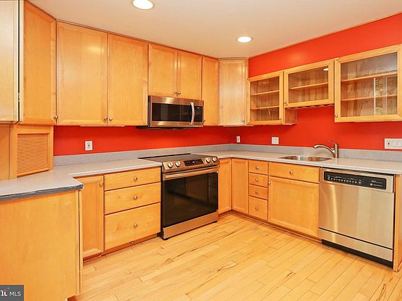 This fabulous townhome has amazing views of Lake Anne and the fountain from two decks and a TREX patio! Enter the ceramic foyer that leads to the open, bright dining and living rooms with large glass spaces. An artist-designed stained glass window in the dining room and artist-designed and built fireplace doors in the living room are both custom made for their spaces! Tall glass sliders lead to the outside deck overlooking the Lake Anne Plaza. All the doors and windows have been replaced with energy-efficient products. The kitchen features custom cabinetry with an appliance garage, a pantry, deep drawers, a wine glass holder, multiple corner cabinets with Lazy Susans and a large slider leads to the front patio. In 2021 the stainless steel oven, microwave and the French door refrigerator were installed. The upper level includes a fabulous primary suite with a bedroom space that will easily accommodate a king-sized bed and a sitting room area. This home was built as a 3 bedroom on the upper level,. Later it was altered to a 2 bedroom,, but could be converted back to 3. A large balcony/deck off the primary suite offers another great view of the lake and the surrounding area. The primary bathroom features a curved glass block wall, a custom vanity and a spacious frameless glass-doored shower. The second bedroom also abuts its own full bath with a tub/shower combination. The lower level is a full walk-out with a large rec room and a half bathroom. A TREX deck off the rec room is accessed by another large slider and a patio area adjoins the atrium door. The large unfinished storage area, the laundry room and the utility area complete the lower level. The Samsung washer was new in 2015 and the water heater in 2013. The very special location of this home offers easy access to all that Lake Anne Plaza has to offer - restaurants, the Reston Museum, an art center, shops, Reston Community Center and so much more. The Reston Farm Market, just a few steps beyond the Plaza, is open every Saturday in spring, summer and fall. Concerts, a cardboard boat regatta, and many other celebrations are on the Plaza throughout the year! Don't miss this great opportunity to become part of a very special neighborhood.
