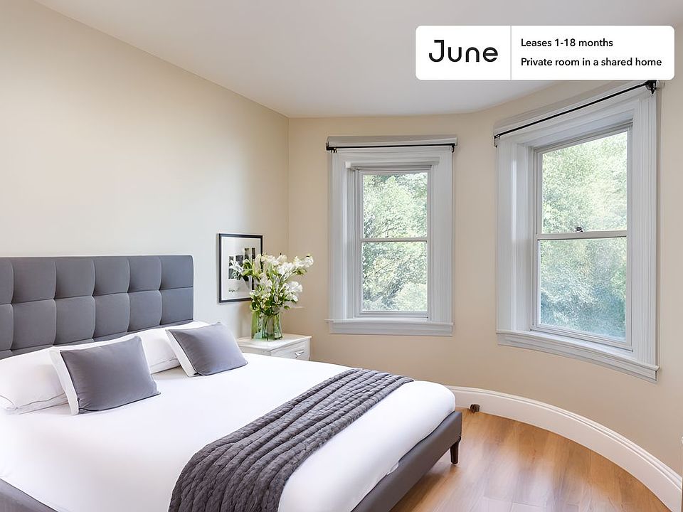 This Queen room in Brighton is available on a 12 month lease or a flexible short term (31 to 364 days) lease. You pick your custom start and end date. Monthly rent rate is determined by furnishing preference, move-in date and move-out date. Speak to a June representative for recommendations on the best stay duration for the lowest rate.