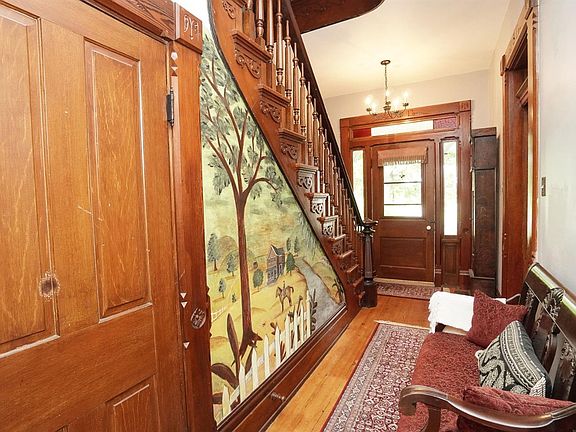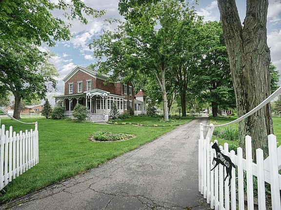 Amazing brick Victorian w/attention to detail throughout! Pristine, updated home on 3 mature acres, just outside of town. Artfully landscaped / city convenience w/country living. Amenities and special touches abound such as wide base trim/back staircase/cherry & walnut turned formal staircase, wood floors, striking fireplace, to name only a few! Upgraded barn and garages!