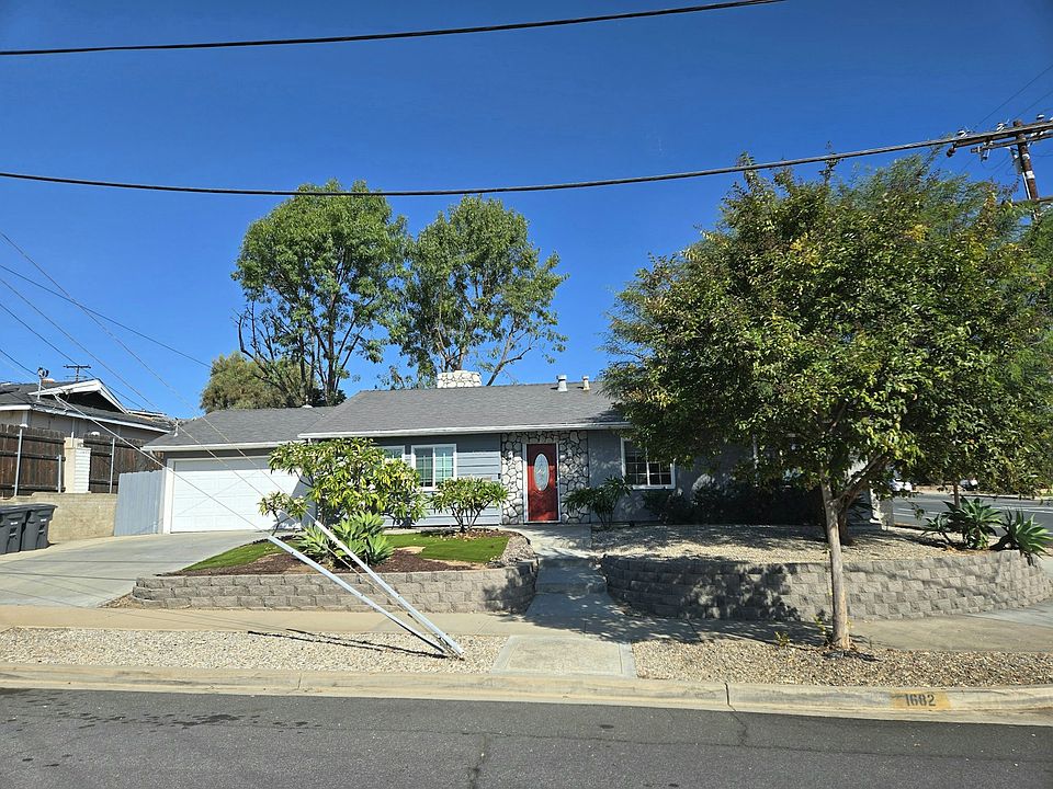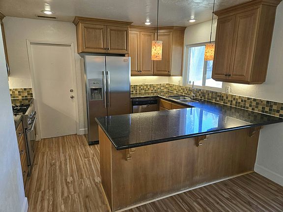 Single family home on corner lot. Vinyl plank flooring, remodeled kitchen & primary bathroom. Good size private backyard and garage with washer & dryer. Dual pane windows and central heat & A/C. Close to shopping & freeway access. Landscaper every two weeks is included.