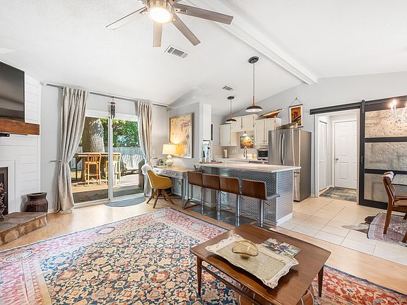 Peninsula seatingLarge deckUpdated kitchen spaceStainless steel appliancesOpen-concept layoutThree bedroomsMature shade tree