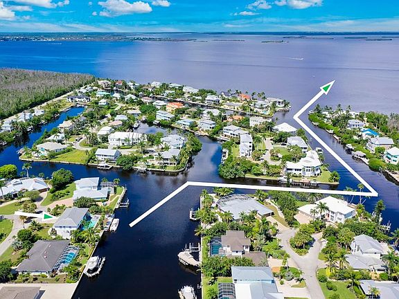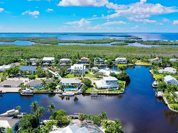 Direct Bay access canal-front gem, where manatees and dolphins play and swim just beyond your dock! This elevated, sun-drenched home features four spacious bedrooms and two baths, promising plenty of room for both laughter and lazy Sundays. Step inside to an open-concept kitchen that flows effortlessly into a spacious great room ready to host epic board game battles or dignified dinner parties—whichever suits your mood. The great room features stunning granite counters in the Kitchen where culinary magic happens, a space for lively dinner parties that can seat up to 10+ people and a living area perfect for entertaining, fun and games or quiet solitude. Need a breath of fresh air? Retreat to the screened porch or poolside lanai where you can lounge with your favorite beverage while admiring the canal views. The lanai might even become your favorite grilling spot, just a step from your very own dock equipped with water and electricity. Oh, and don’t overlook the spacious two-car garage—it promises to end the age-old debate of whose car gets the premium spot. Located on a quiet cul-de-sac, you’re just minutes from San Carlos Bay boating and fishing, super close to open waters in the Gulf, a short car or bike ride to the beach, shops and restaurants. Whether you're seeking peaceful solitude or lively gatherings, this home offers the perfect backdrop.