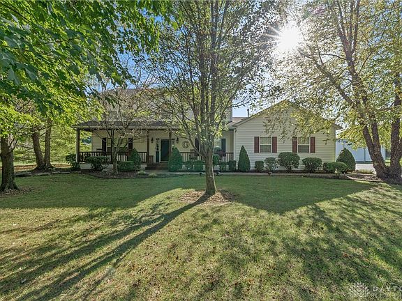 Welcome to country living at its finest on over 5 acres! Discover the tranquility of this beautifully crafted custom home nestled on a quiet cul-de-sac in the sought-after Bend at Washington Mill Subdivision. With no HOA fees and no city taxes, this property offers a peaceful retreat while being just minutes from interstates, shopping, and dining. Step onto the inviting front porch and into a grand two-story entry featuring nine-foot ceilings that leads to bright, open living spaces. Hardwood floors add warmth to the entry and into the kitchen. The main floor also boasts a large, convenient laundry room, a cozy family room with a wood-burning fireplace. Access the charming backyard patio where outdoor living is a dream, with a firepit, bistro lighting, and a beautifully landscaped, fenced yard (new fence installed in 2022). Additional storage options abound with a spacious basement, an oversized two-car garage with a work area, and a large pole barn (32x28) with electric. Modern updates include new bathroom vanities, a whole-house propane generator and a reverse osmosis system, a well pressure tank, a whole-house filter, a water softener, and an ionizer (2023). Enjoy the best of country living without sacrificing convenience, all set within a serene, private setting. This home truly has it all!