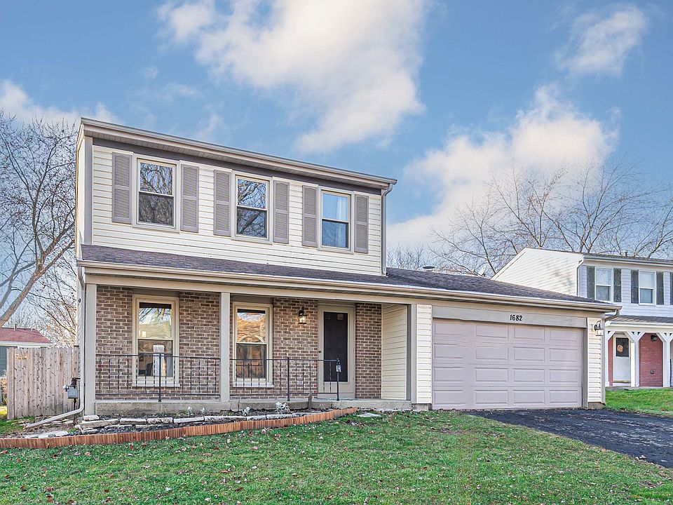 Hunters Run Neighborhood 3 bedroom home located in Indian Prairie School District 204! This 2-story home features NEW stainless steel appliances 2023, Furnace & HWH 2022, A/C 2020, Fully Fenced backyard w/ storage shed and screened-in patio. The big kitchen has added cabinets (2021) and a pantry closet for all your storage needs along with hardwood flooring that flows into the living room w/ a wood burning fireplace. NEW Matching Smart Lights throughout the house (6), NEW paint throughout home (2021), powder room remodel (2022), 2 modern ceiling fans (2021), outlets/switches/covers all replaced in 2021 and guest bedroom NEW windows 2023. Plenty of storage w/ backyard shed and pull down stairs to attic in garage. Raised Garden Bed w/ garden fence (2023) perfect for those with green thumbs and relax on the front porch as you meet your new neighbors!