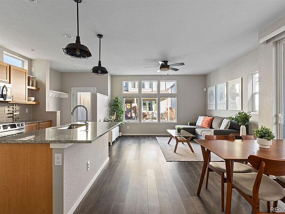 Additional features include central air conditioning, a tankless water heater, a whole house humidifier, an attached two car garage, and a private fenced yard that invites quiet mornings and relaxed weekends outdoors. Set within the sought after Midtown community with pocket parks, trails, and walkable favorites such as Bruz Beers and Early Bird, this location offers a connected Denver lifestyle.