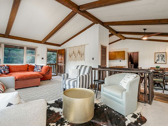 Beautiful, fully furnished and freshly painted property with magnificent views of the Chalk Cliffs. Enjoy this private home on 1 acre that backs up to open space with multiple decks and three fireplaces. Vaulted ceilings and newly installed flooring in both bathrooms (not in pictures). Open to a 30+ day lease, full year, or somewhere in between.
