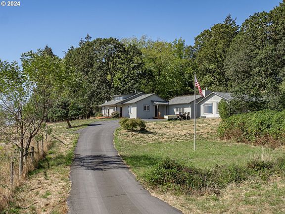 Highly coveted, hard to find & versatile acreage, 10 minutes to Newberg with dreamy level & rolling hill topography with vineyard, valley, Cascade, Coastal Range & Dundee Hills Mountain views define this country estate. Property features a 1995 built, passive solar home, 3 stall barn, outbuilding, garden/wood & tool sheds, fenced and x-fenced with pasture, seasonal stream & forest; ready for a hobby vineyard, farm and/or domestic animals, agricultural crops, at-home business plus room to expand. Private home features great room w/2 sliders to separate decks, vaulted ceiling, Lopi wood stove & views out all windows. Kitchen with maple cabinets, eat in dining table space & open to great room with abundant natural light. 2 bedrooms & 1 bath with double closets, slider to deck; both with room to expand. Garage was converted to 3rd bedroom, full bath, laundry & built in storage w/private entrance off front entry deck. 3rd bedroom has murphy bed, plumbed for wood stove & ability to add efficiency kitchen for separate living space, guest quarters, studio, or additional family room. Foundation was constructed to support a 2nd level and plans to extend the 2-bedroom areas to include a master suite and add 748 feet are included if buyer desires. Outbuilding is compartmentalized into 4 separate areas for the utmost functionality: Relax & workout in the exercise/yoga/spa room complete with sauna, free standing hot tub, 3/4 shower, tile floor, vaulted ceiling, fan & skylights; Storage room with cement floor & built in cabinets; Shop has cement floor, shelves, multiple electrical outlets for tools. Wine room with cement floor, includes all the wine racks and window AC unit for temperature control. 20 GPM Well, Fixed wireless internet, 1000-gallon septic system, 50-year roof installed on home & outbuilding in 2022, Fir sided home exterior & outbuilding painted in 2020, VanEE air exchange system, mini split & zonal ductless systems for high efficiency & clean air flow. Must See!