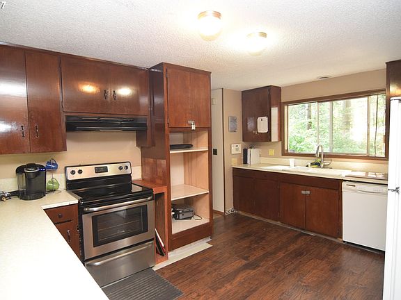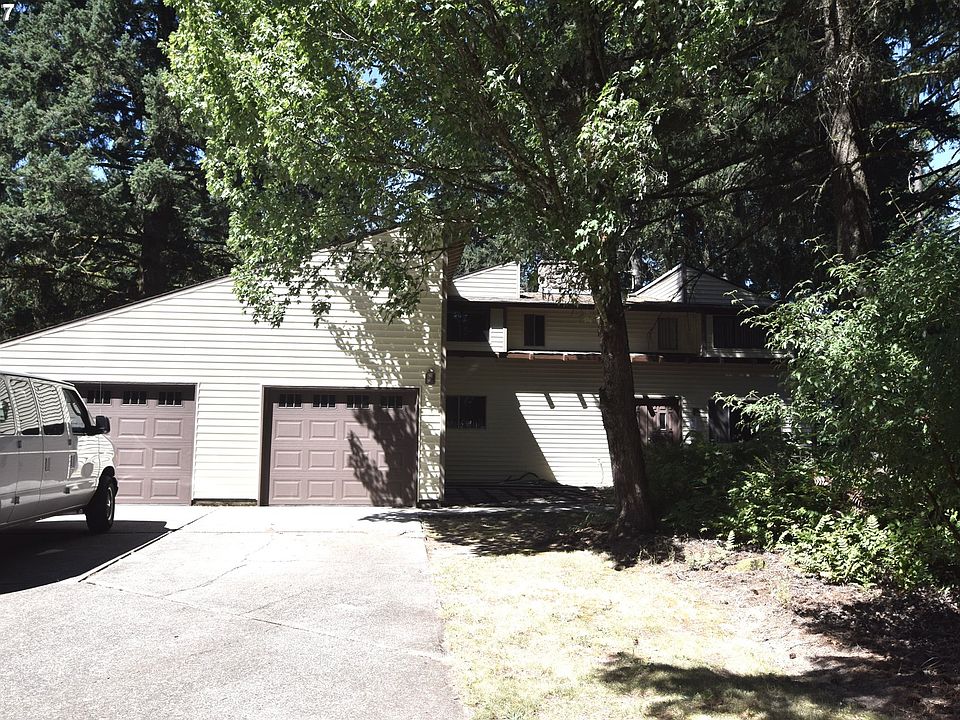 Turn this spacious NW Contemporary into a Jewel nestled at end of a culdesac in a quiet neighborhood on a huge private wooded lot. Enjoy the deer & wildlife in your own bkyd! A cool curving staircase leads to a huge vaulted master br w/ office area. Lots of ways to flex the space for more BR or less but larger BR. Spacious kitch w/dining area & door to roomy deck. Great opportunity-sold as is, seller to do no repairs.