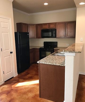 New town home! Located in the Northeast area near 1604 and I-35. Near the Forum, Randolph Air force base, shops and restaurants. Place include private fenced in yard, 1 car garage, 2 car driveway. Interior features include: granite counter tops, stained concrete floor, accent ceiling, ceiling fans, electric oven, built in microwave, dishwasher, refrigerator, washer and dryer hook ups. Pictures are from a similar unit and room measurements are not exact but close