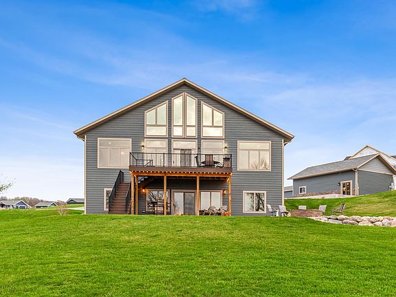 Well here it is. This year round lake home has it all and more. It is a rambler style home with a walkout basement. This 4 bedroom, 4 bath, huge garage that it completely finished, with a bar, epoxy floor and heated with a half bath. Home boasts high end amenities, tiled shower, solid surface countertops, open floor plan, custom wood working and Alder cabinetry, gas fire place, a pellet fireplace, basement has 9ft ceilings, On demand water heater, sprinkler system, curb design, landscaping, asphalt road to beach/lake front. The laundry is on the main floor and connects to primary bedroom walk in closet. Coffee bar bistro station cabinet, maintenance free decking, poured patio under deck with fire pit. Beautiful landscaping all around. 2 additional shops one is 25x36 and the other is 12x24. Concrete driveway and parking area along with asphalt driveway.
