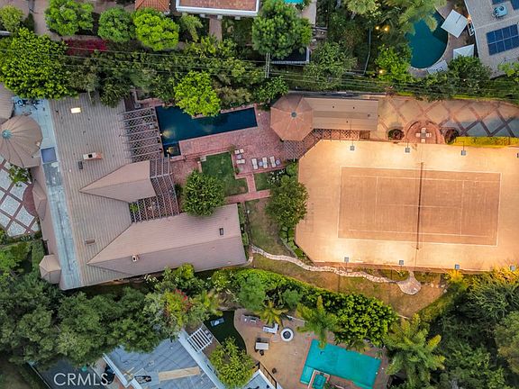 Outside, embrace the California lifestyle with beautifully manicured lawns, a pool, spa, and a pool house casita overlooking a regulation-sized North-South lighted tennis court. Whether you're hosting summer parties or enjoying quiet evenings, this estate offers it all.